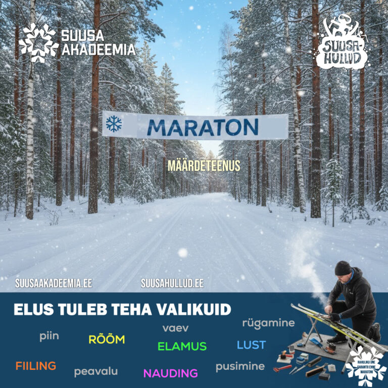 Palun täida need lahtrikesed kui soovid maratoniks suuskade määrimise broneerida. Tasumine toimub sellel aastal kohapeal kui suusad üle annad või neile järgi tuled. Saab sularahas ja ka kaardiga.